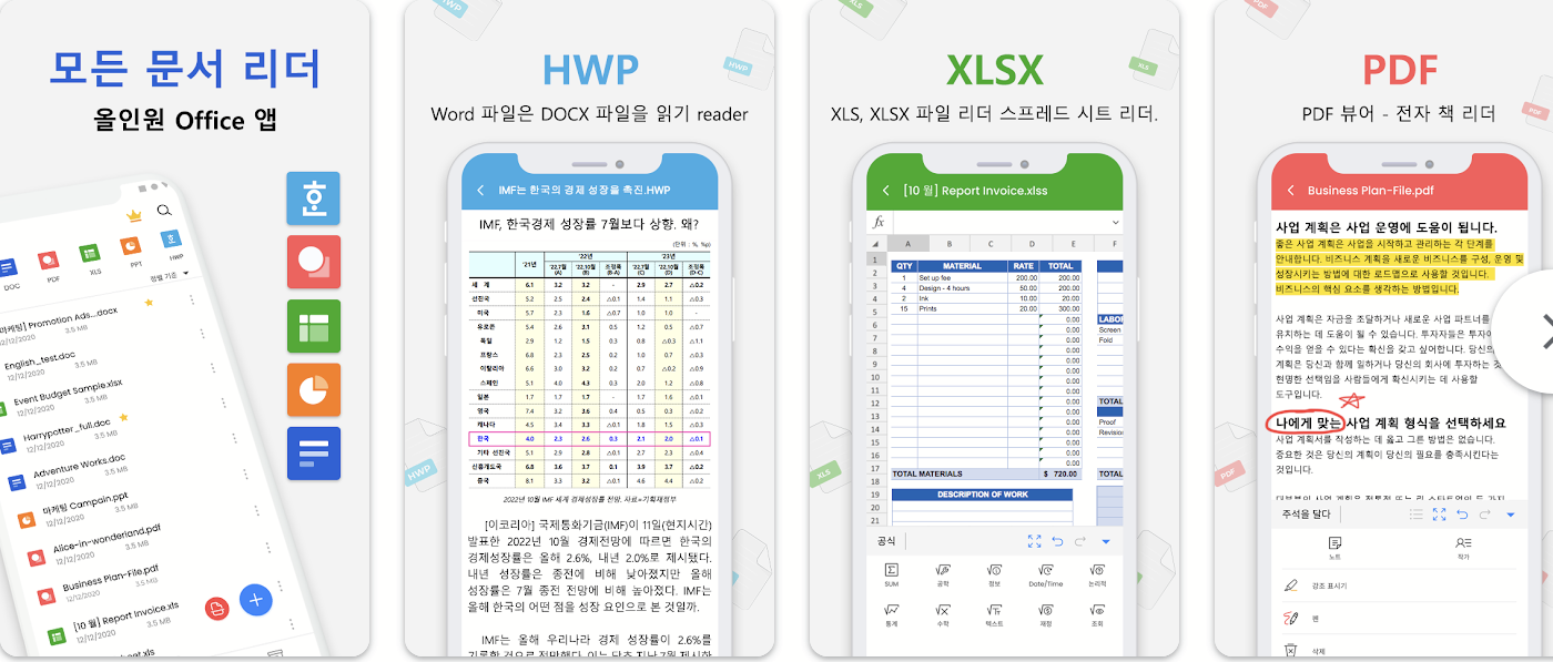 워드 오피스, HWP, PDF, Docx, XLSX, 올인원 오피스 앱